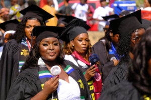 Vi havde en fantastisk tur, hvor vi som sagt blev vist rundt om fredagen. Lørdag var vi med til graduation. Fantastisk flot arrangement, og Foday, vores bestyrelsesmedlem fra Sierra Leone, havde taget sin familie med, hans to døtre og to børnebørn. De var også med rundt om fredagen og var med på arrangementet om lørdagen, hvor Foday fik flettet ind i programmet, at den danske gruppe var her og skulle presenteres . Det var os, der havde skabt det her store projekt, og derfor blev vi hyldet i forbindelse med graduationen. Det var ikke helt efter planen, og det var heller ikke noget, hverken jeg eller andre fra bestyrelsen havde ønsket. Det var et selvbestaltet indslag fra Foday. Det virkede også okay og var fint, og det blev ikke overdrevet og fyldte ikke så meget. Det var fint nok.